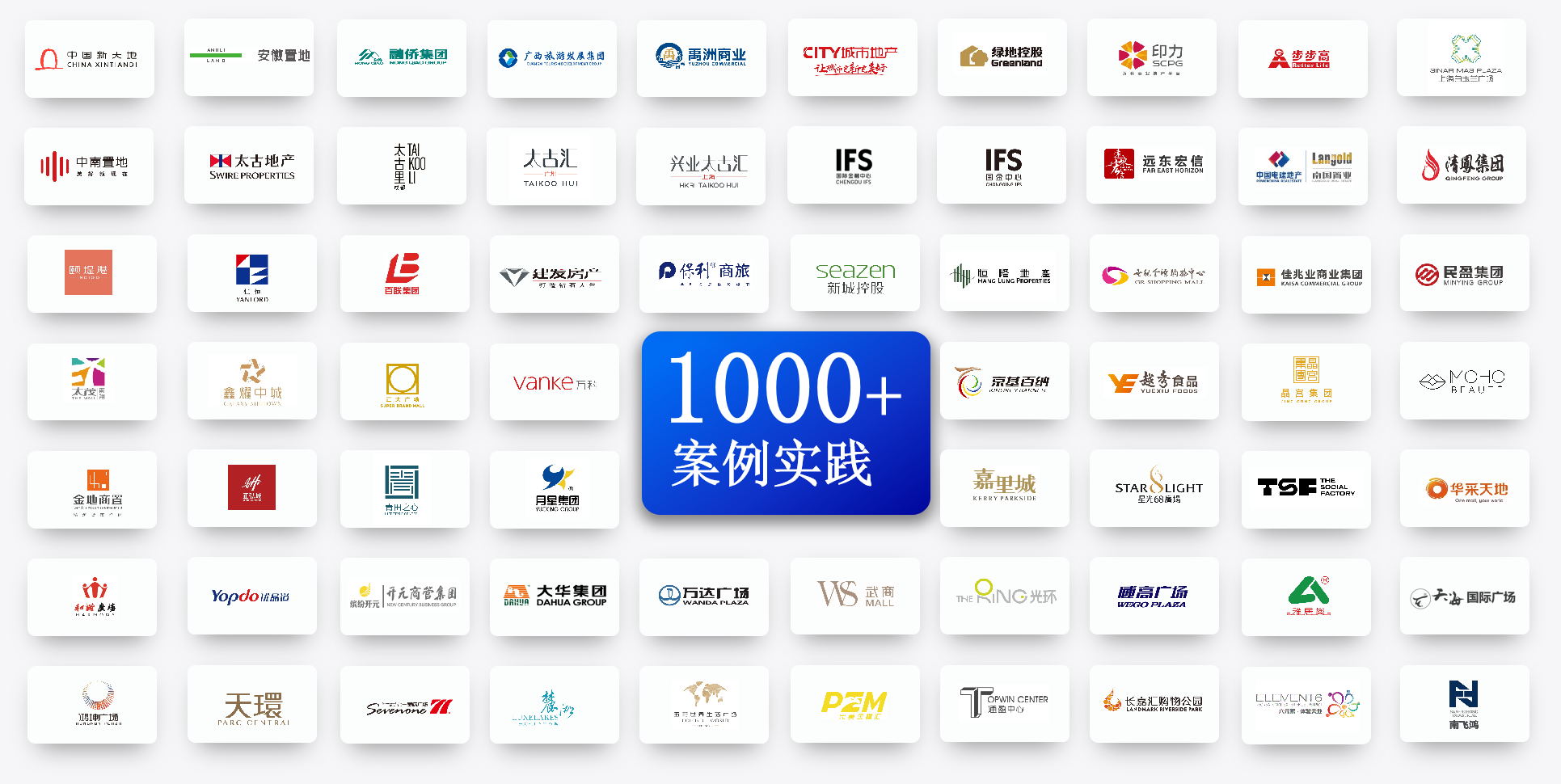 近30年來,團隊服務(wù)行業(yè)客戶已突破1000家,在商業(yè)地產(chǎn)行業(yè)Top50企業(yè)中,海鼎科技客戶覆蓋率達60%,包括:恒隆地產(chǎn)、太古地產(chǎn)、九龍倉集團、印力集團等知名企業(yè),擁有前沿、可靠的商業(yè)地產(chǎn)數(shù)字化建設(shè)經(jīng)驗。